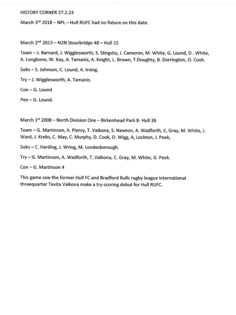 Thanks to Norman Angell’s comprehensive records, we continue to take a trip down memory lane. We look at matches played this week, five, ten and 15 years ago with team sheets, scorers and results.