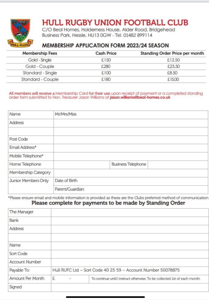 Hull RUFC Membership Scheme