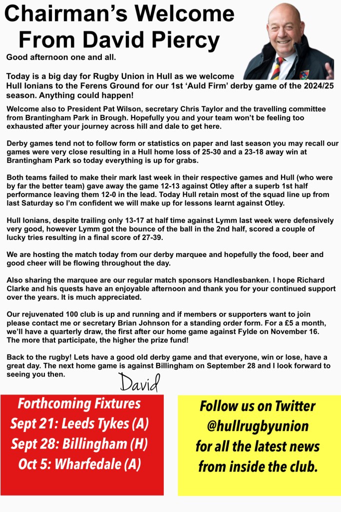 UncategorizedHull RUFC Vs Hull Ionians Digital Programme September 13, 2024September 14, 2024 Hullrugbyunion The digital matchday programme for our home game with Hull Ionians will appear here. Screenshot Share this: Click to share on X (Opens in new window) X Click to share on Facebook (Opens in new window) Facebook Like Loading... Related Published by Hullrugbyunion View all posts by Hullrugbyunion