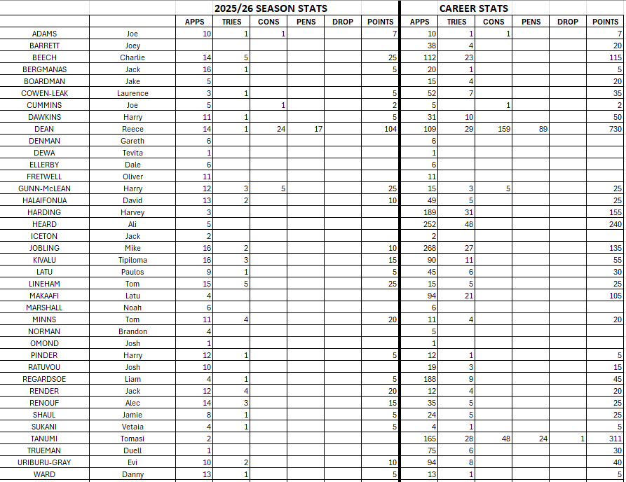 | Tries | McKENZIE, Leroy (135) |